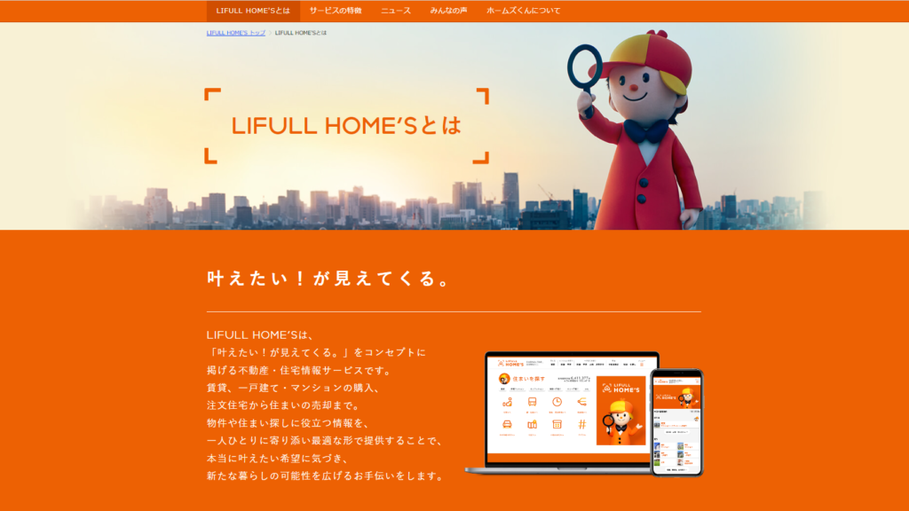 LIFULL HOME’S(ライフルホームズ)とは、創業20年以上の株式会社LIFULLが運営しているサイトで、「買う」「借りる」「リフォーム・建築」「売る」をサポートする日本最大級の不動産・住宅情報サイトです。